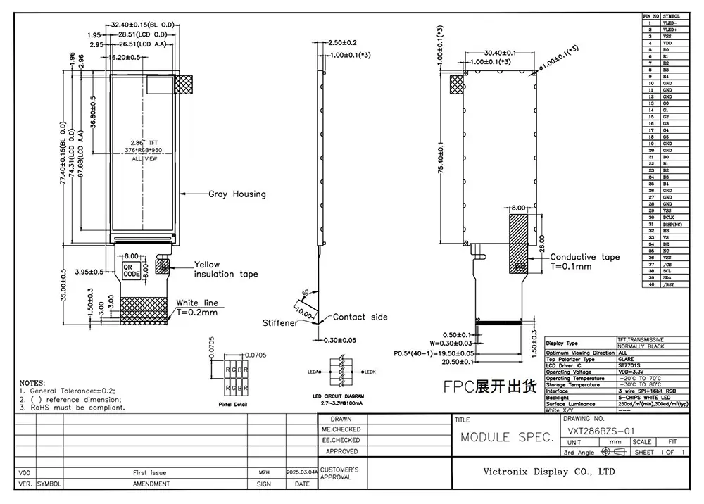 Vo veku inteligencie nám modul TFT umožňuje vizuálne prezentovať požadované údaje. Kvalita modulu TFT má kritický vplyv na jeho aplikáciu. Aké sú výhody modulu Victronix 2,86 palca 376 × 960 IPS TFT? Najprv jeho jas 300 Cd/m², kontrastný pomer 1500: 1, uhol pozorovania 85 stupňov vo všetkých smeroch a 80% uniformita zabezpečujú živé snímky. Po druhé, podporuje rozhranie SPI+16bit RGB s ST7701S a 5-dies biele LED podsvietenie s životnosťou 30 000 až 50 000 hodín, čo zaisťuje jeho dlhodobú použiteľnosť v rôznych priemyselných aplikáciách. Okrem toho je v súlade s normami ROHS a úspešne prechádza prísnymi testmi spoľahlivosti, vrátane tepelného šoku, vlhkosti a ochrany ESD až do 8 kV vzduchu a 4 kV kontaktu. Tento produkt funguje efektívne pri extrémnych teplotách v rozsahu od -20 ° C do +70 ° C a vydrží vážne podmienky skladovania od -30 ° C do +80 ° C.